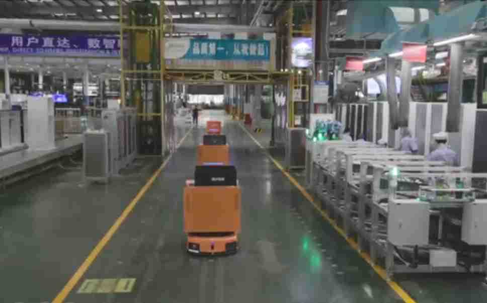 为车载冰箱物流配送打造的智能解决方案,,,,包含产中物流通过潜伏举升AMR搬运至线边,,产后成品物流智能仓储,,,流程包含产中物流智能齐套入库,,,,线边安灯叫料AMR智能配送至线边,,成品入库、、、、出库,,,通过无人堆高车机器人,,,,智能仓储管理替代人工作业管理,,实现更高存储、、、、更高效率、、、更具柔性化的解决方案。。。。